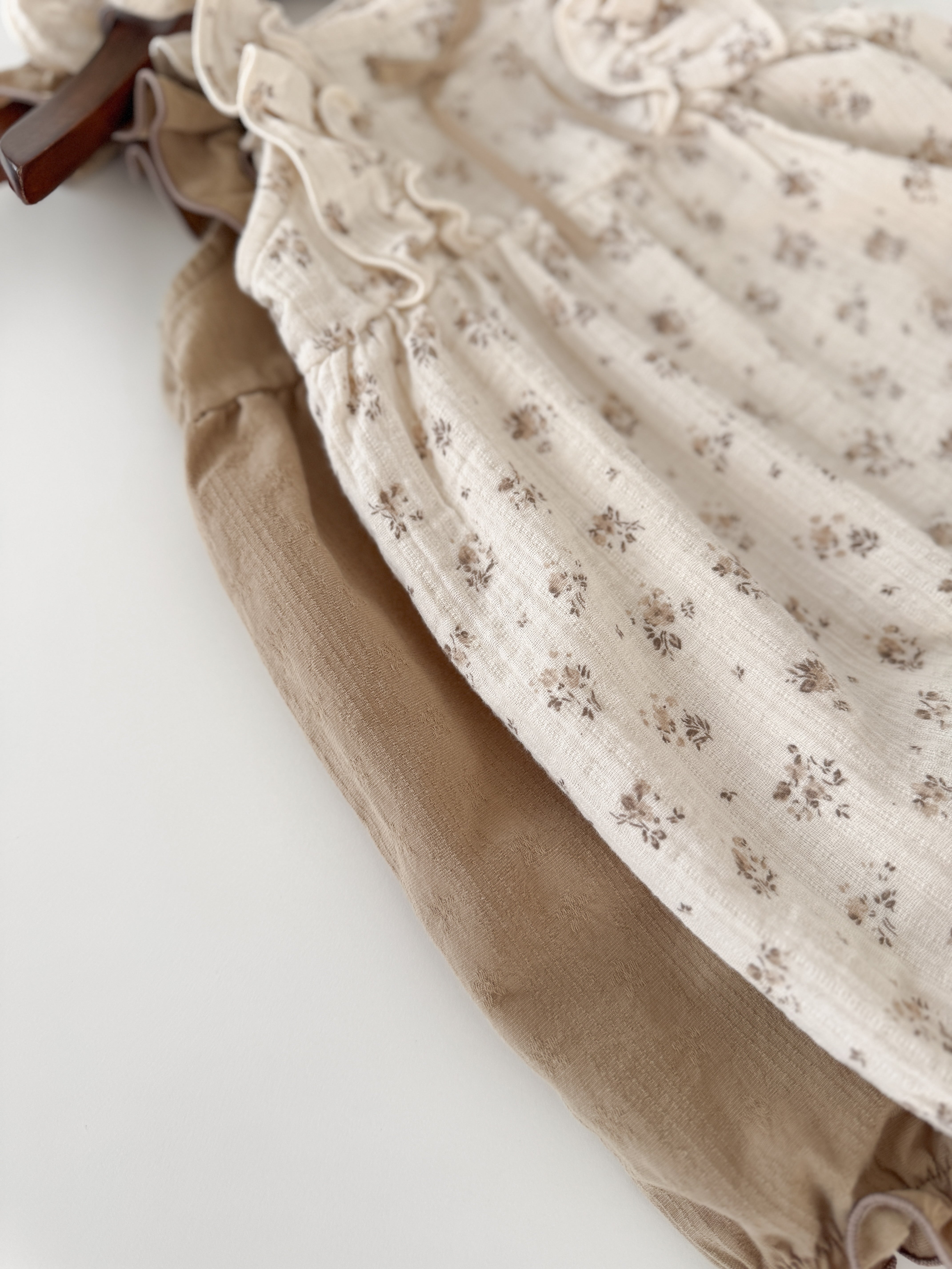 肩紐のフリルデザインと